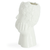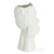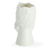 Koristeellinen valkoinen maljakko, jossa on kasvokuvio
