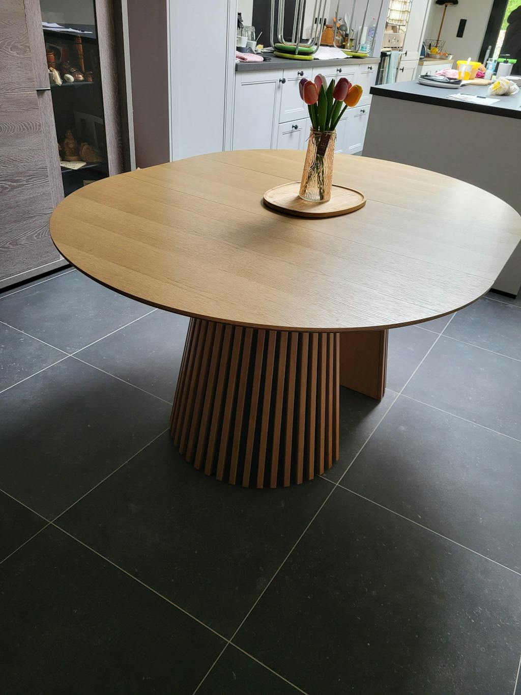 Vakiohalkaisijaltaan 120 cm:n Lewis-pöydässä on istumapaikkoja jopa 4 hengelle. Lisäksi mukana toimitetaan 2 jatkolehteä. Näiden jatkolehtien avulla voit laajentaa pöydän kokoa tarpeen mukaan, ja voit valita, lisäätkö pöydän halkaisijaa 40 cm vai 80 cm. Tämä tarkoittaa sitä, että pöytä voi olla joko 160 cm tai 200 cm, riippuen toiveistasi ja vieraiden määrästä